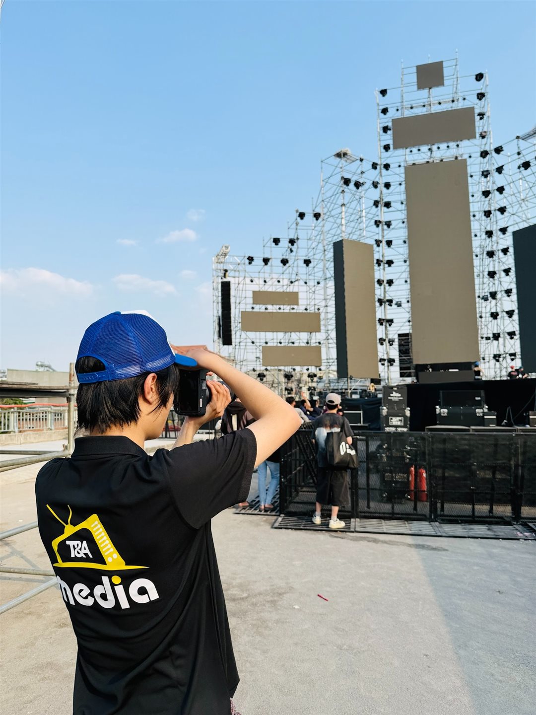 Team chụp hình ảnh sân khấu, các em được trang bị máy ảnh cùng lens zoom xa để bắt được những khoảnh khắc của nghệ sĩ trên sân khấu