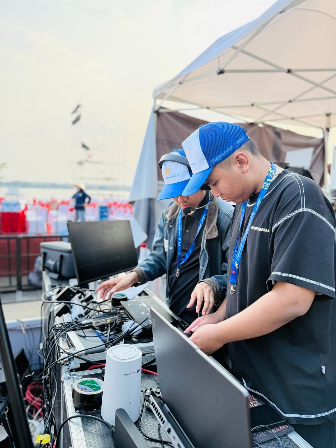 Những ngày cận kề chương trình Countdown Trấn Biên, khu vực hậu trường sân khấu luôn trong trạng thái vận hành liên tục. Âm thanh thử loa, ánh sáng chạy demo, màn hình kiểm tra tín hiệu và các thiết bị công nghệ hoạt động không ngừng. Trong không khí tất bật ấy, sinh viên và cựu sinh viên Đại học Lạc Hồng đang trực tiếp đảm nhiệm nhiều hạng mục kỹ thuật và truyền thông quan trọng của chương trình, góp phần tạo nên một sự kiện cộng đồng hiện đại và chuyên nghiệp.