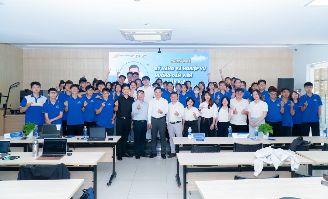 Sáng ngày 17/04/2026, Khoa Quản trị – Kinh tế Quốc tế, Trường Đại học Lạc Hồng đã tổ chức chuyên đề “Kỹ năng và nghiệp vụ hướng dẫn viên trong tour máy bay” tại phòng B203 – Cơ sở 1, thu hút đông đảo sinh viên ngành Quản trị dịch vụ du lịch và lữ hành tham gia.