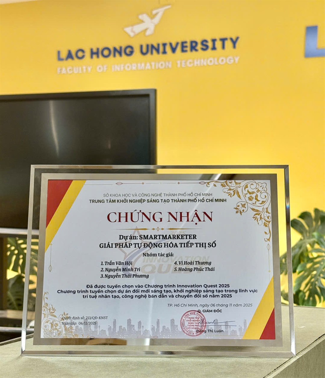 Việc đội SmartMarketer góp mặt trong 13 dự án được ươm tạo không chỉ là thành tích của riêng nhóm mà còn là dấu ấn của Khoa CNTT  Đại học Lạc Hồng trong bản đồ đổi mới sáng tạo của thành phố.
