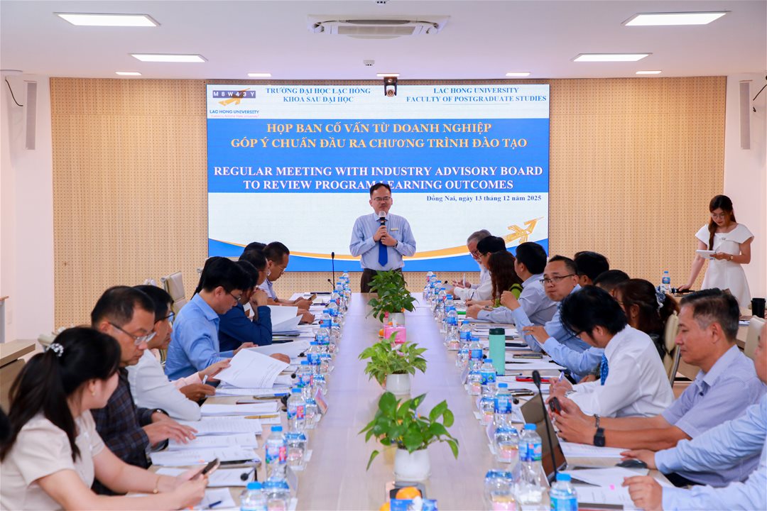 Vào sáng ngày 13/12/2025, tại phòng họp cơ sở 1, buổi họp Ban cố vấn từ doanh nghiệp đã diễn ra với sự tham dự của Ban giám hiệu, Tập thể khoa Sau Đại học, Trung tâm Tuyển sinh và Quan hệ công chúng Trường Đại học Lạc Hồng và nhiều đại diện từ các doanh nghiệp có quy mô lâu đời trên địa bàn tỉnh và các khu vực lân cận. Đây là một sự kiện quan trọng trong năm học 2025 - 2026, nhằm thúc đẩy mối quan hệ hợp tác giữa nhà trường và các doanh nghiệp.