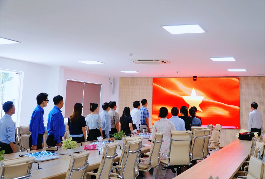 Buổi lễ diễn ra trong không khí trang nghiêm, thể hiện niềm vinh dự, tự hào của tuổi trẻ Trường Đại học Lạc Hồng khi được đứng trong hàng ngũ của Đảng.