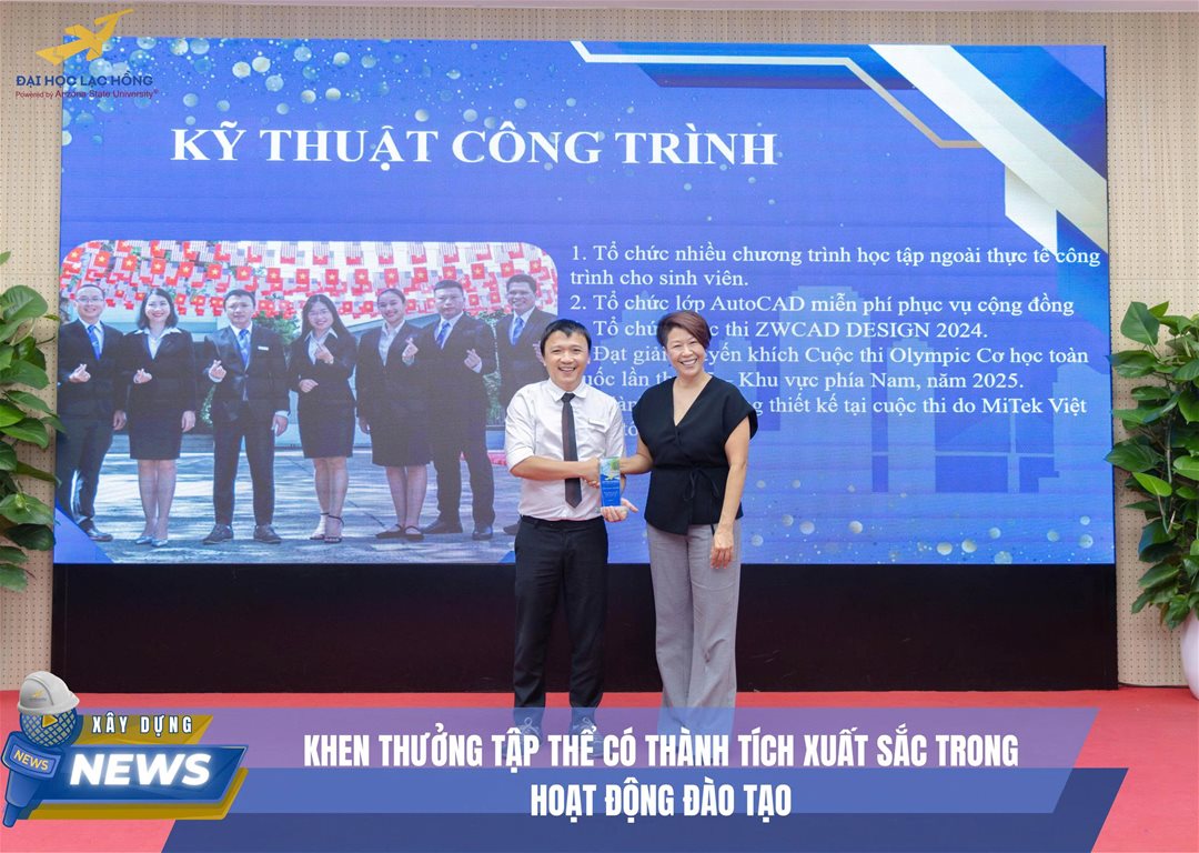 Lễ tổng kết và khen thưởng không chỉ ghi nhận những đóng góp to lớn của đội ngũ giảng viên, mà còn là nguồn động lực để Khoa Kỹ thuật Công trình – Trường Đại học Lạc Hồng tiếp tục nỗ lực, nâng cao chất lượng đào tạo, đồng hành cùng sinh viên trên hành trình trở thành những kỹ sư bản lĩnh, sáng tạo, đáp ứng nhu cầu phát triển hạ tầng và xã hội.