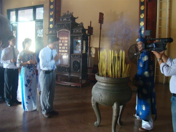 Teachers burn incense at Tran Bien Temple of Literature.