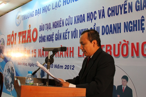 “The relation between the university and businesses is encouraged to extend and develop deeply particularly in training, science research and technology transfer by the Ministry of Education and Training. Lac Hong University has been preparing for a right step with the Ministry’s policies, suiting new educational regulations that will be soon issued. The associate model between Lac Hong University and businesses should be promptly enlarged, and shared with other universities nationwide” said Prof. DSc. Bui Van Ga – Deputy Minister of Education and Training at the seminar “Training, science research and technology transfer associated with business need” held at Lac Hong University on October 6, 2012.