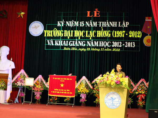 A solemn ceremony was held at Dong Nai provincial Event and Convention Center on November 15 to celebrate the 15th founding anniversary of Lac Hong University and open its new school year 2012 - 2013.