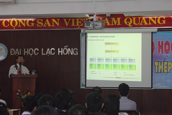 The scholarship awarding ceremony was organized at Room B 203 – Campus 1 – Lac Hong University with the attendance of the Chief of the Dong Nai province’s Department of Education and Training Phan Dinh Chuong, Vice rectors of Lac Hong University Dr. Diep Cam Thu, Dr. Nguyen Van Nam and Lam Thanh Hien, M.A, Director of Enterprise Relations and Student Support center Tran Dung, M.A, General Manager of SeAH Steel Vina Corp. Nam Hyung Kun and Deputy General Manager Park Sang Yong.