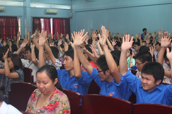 At the program, the participants raised many questions to the Board. These questions mainly focused on areas such as education, scientific research, internships, facilities upgrading, training majors, .... The Board directly responded to these questions.