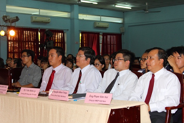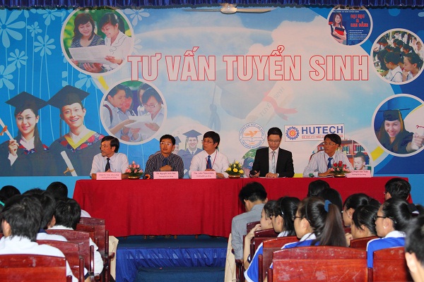 Attending the program was representatives of LHU including Lam Thanh Hien, M.A – Vice Rector, Assoc. Prof. Dr Tran Van Lang – Dean of Information Technology, Dr. Nguyen Van Tan – Head of Scientific Research and Postgraduate Office, Pham Van Toan, M.A – Vice Dean of Electro Mechanics; Vo Xuan Ly, M.A – Deputy Director of HCM city University of Transport; Dr.Tran Ai Cam – Vice Rector of Nguyen Tat Thanh University; Dr. Tran Dinh Ly – Head of Nong Lam University’s Academic Affairs; Mr. Le Dai Hung – Deputy Head of Saigon College of Art Culture and Tourism’s Academic Affairs; Mr. Nguyen Quoc Anh – Head of HCM University of Technology’s Communications and Enrollment Consultancy; Mr. Pham Van Vui – Deputy General Manager of VMEP Vietnam Co.; Mr. Nguyen Minh Then – Manager of Nec-Tokin Vietman Company’s Technical Department and a great number of students from Ngo Quyen high school.