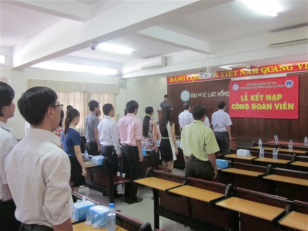 Implementing Union member increasing plan 2013, LHU organized first turn Union member admission ceremony at Room B 203 on May 8. The ceremony was attended by Dr. Diep Cam Thu - Chairman of Trade Union, Dr. Nguyen Van Nam - Vice Chairman of Trade Union, representatives of the Union Executive Committee, Union group leaders and 33 admitted members.