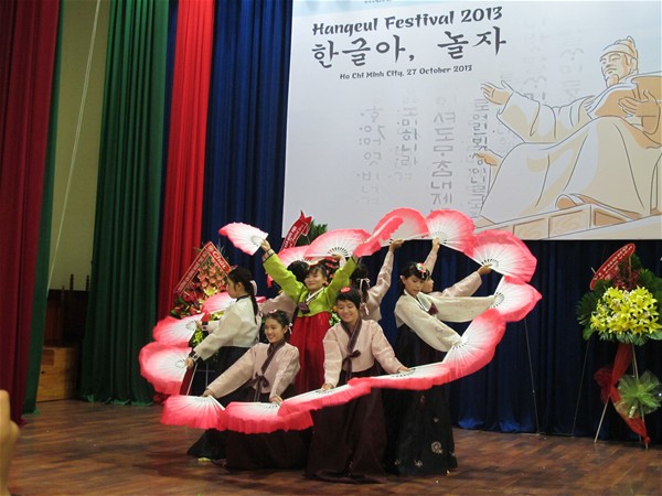 As usual, the Korean Foundation, Korean Cultural Institute, KOICA (Korea International Cooperation Agency), Korean Consulate in Ho Chi Minh city in association with University of Social Sciences and Humanities held Hangeul Festival 2013 on October 27 with the aim of linking Korean language training universities and centers in Southern region in order to exchange and learn about Korean cultural activities.