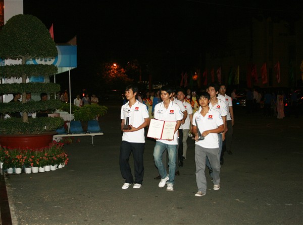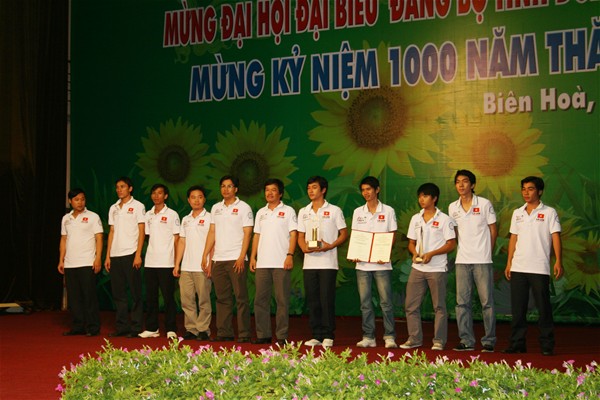 After the achievement reporting ceremony at Tran Bien Temple of Literature, Robocon Lac Hong was on a parade to provincial square to attend the ceremony of the 9th Dong Nai Provincial Party Congress and welcome 1000 year anniversary of Thang Long, Hanoi.