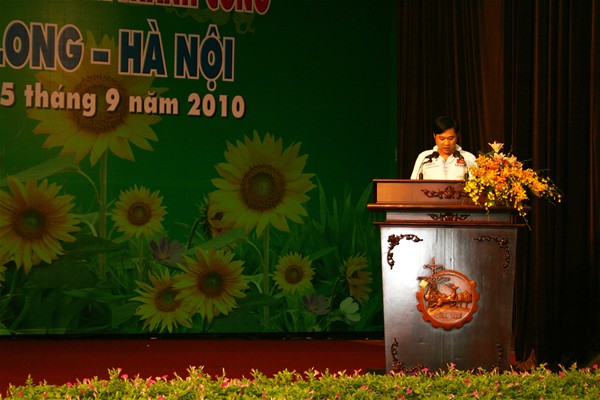 Mr Tran Dinh Thanh presenting flowers and certificates of merit to the team