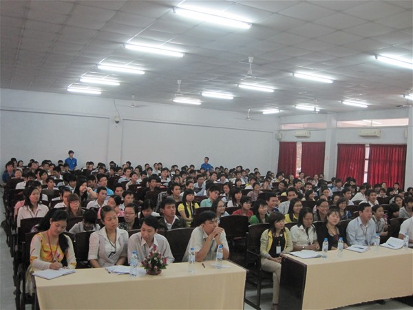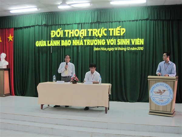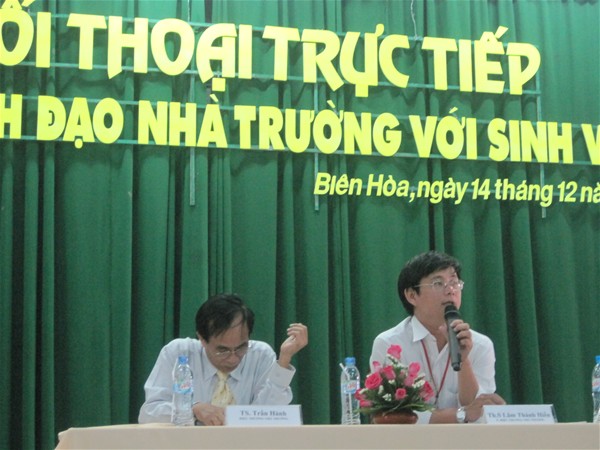 Attending the meeting were Dr. Tran Hanh - Rector and Lam Thanh Hien, M.A - Vice Rector of the school directly answering students’ questions . At the hall, there were also leaders of departments, faculties and centers who were responsible for questions regarding their fields. In addition, Dong Nai Newspapers, Dong Nai Radio and Television Station and almost 400 students as secretaries, heads of branches and civil affairs committees attended the meeting.