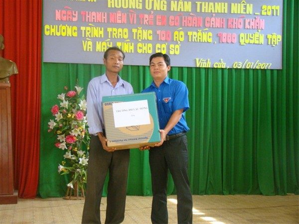 Lac Hong University’s Union in collaboration with the provincial Youth Union donated one computer worth VND six million, 100 white shirts and 1,000 notebooks for 100 pupils of Huynh Van Nghe secondary school in Phu Ly Commune, Vinh Cuu District, Dong Nai Province.
