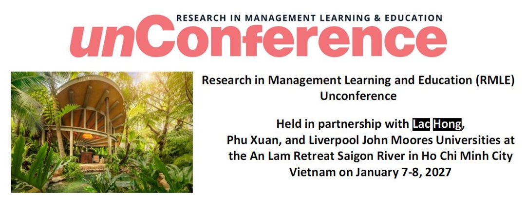 On January 7–8, 2027, the Research in Management Learning and Education (RMLE) Unconference will take place at An Lam Retreat Saigon River in Ho Chi Minh City, co-hosted by Lac Hong University (LHU), Phu Xuan University, and Liverpool John Moores University (UK).