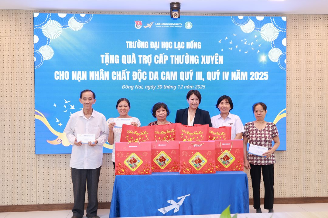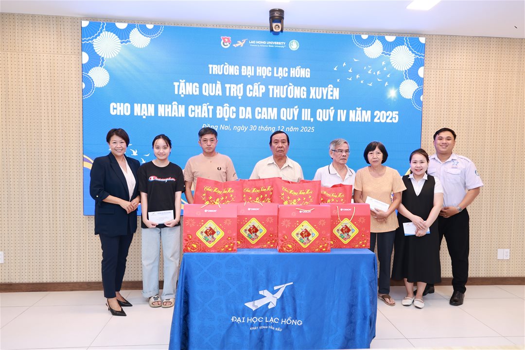 Ngày 30/12/2025, Trường Đại học Lạc Hồng đã tổ chức chương trình trao quà trợ cấp thường xuyên cho các nạn nhân chất độc da cam trên địa bàn tỉnh Đồng Nai, thuộc đợt hỗ trợ Quý III và Quý IV năm 2025.