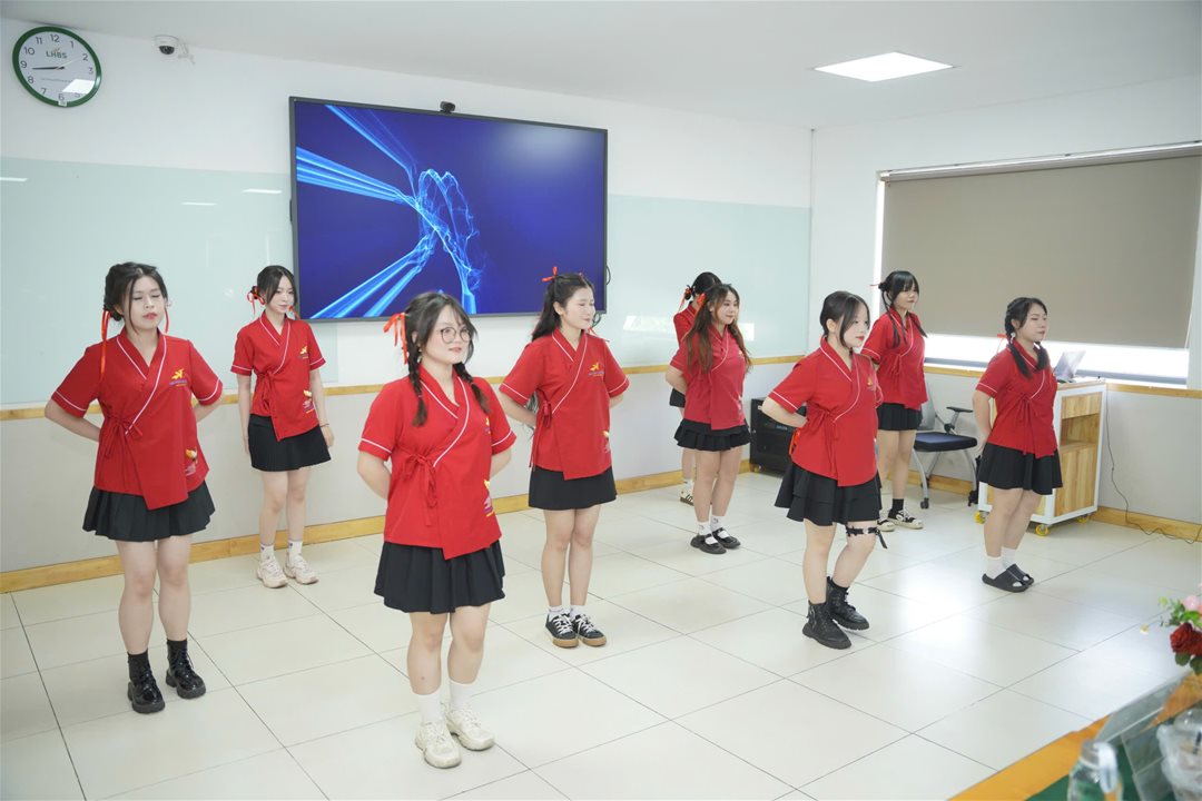 Tiết mục văn nghệ đầu giờ do sinh viên ngành Nhật Bản học biểu diễn